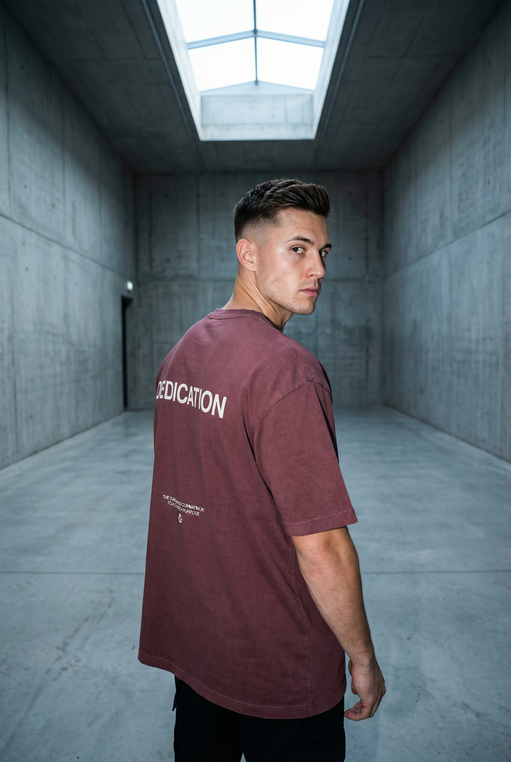 The Dedication Spec is cut from a heavyweight, oversized tee with a vintage-washed finish. Designed for daily wear, training days, early mornings, and late nights. Made from 100% cotton, it delivers a soft but structured feel that holds its shape and layers easily.