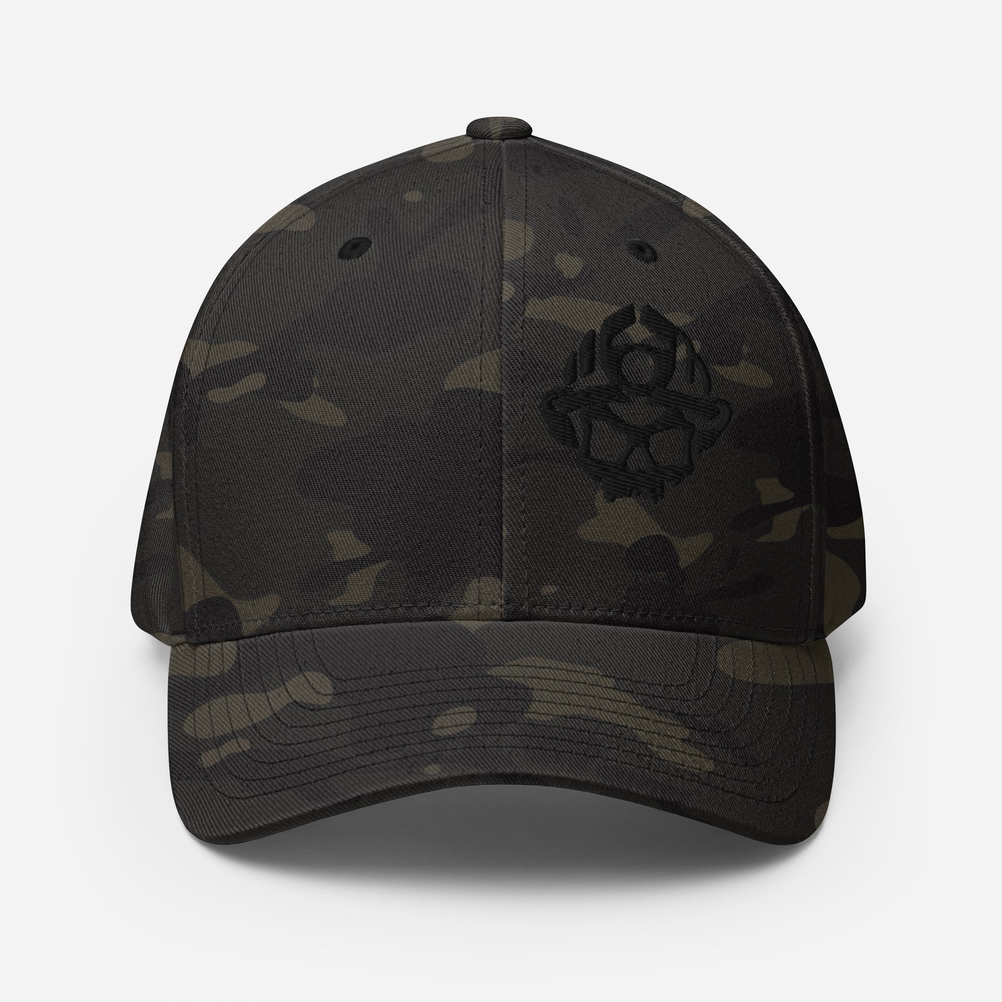 Black Embroidered 3D Puff Skull Logo Flexfit Hat